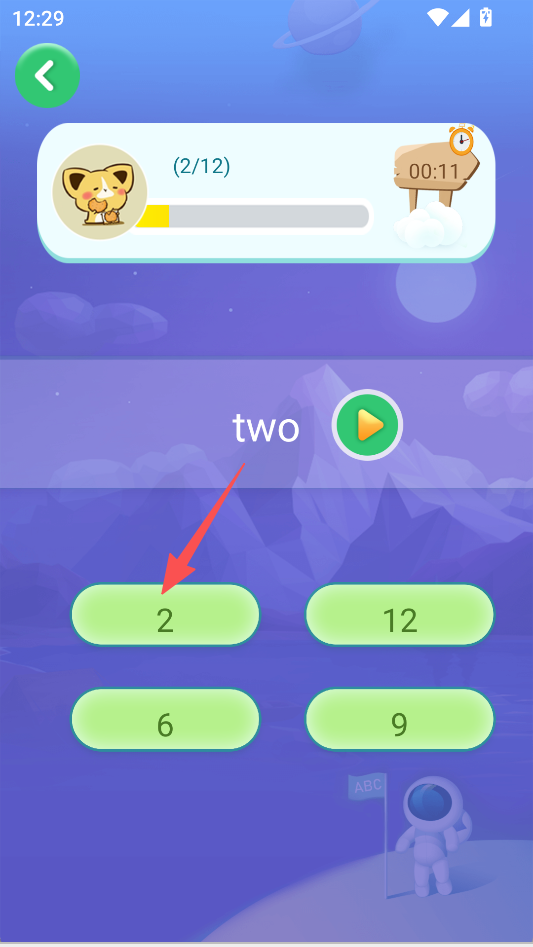3、答题形式趣味且互动性强,例如设置根据英文单词选择对应数字的题目,让儿童在游戏感中完成英语学习。