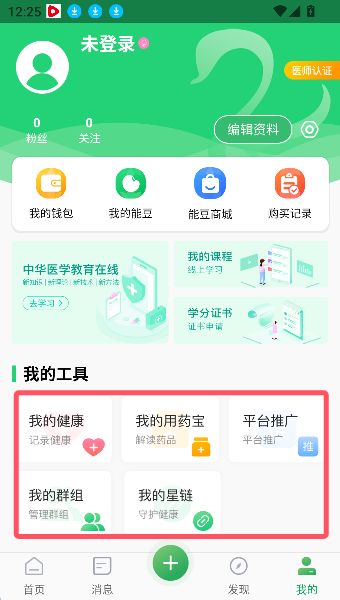 3、进入"我的"个人中心页面,该区域集中展示健康评估摘要、历史咨询记录及药品管理工具。
