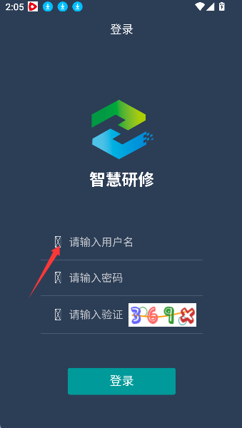 1、启动智慧研修应用后,进入登录界面,在标有“用户名”的输入框内键入个人注册时使用的账号名称。