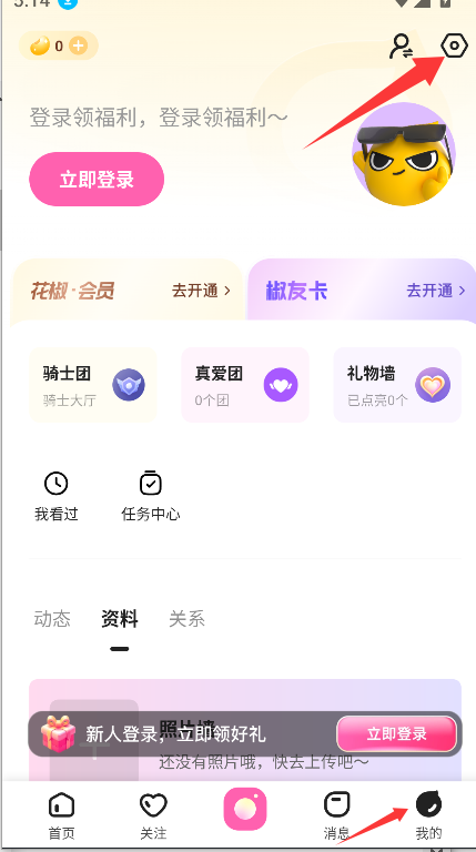 1、进入主界面后,导航至右下角的“我的”页面,在该页面的右上角定位并点击齿轮形状的设置图标。