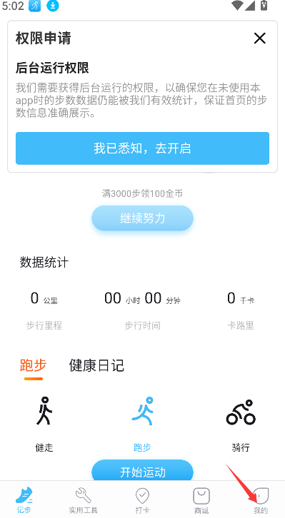 3、应用在后台稳定运行,实现全天候自动计步与距离换算。