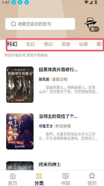 1、打开首页,图书种类多得就像个自助知识盛宴,小说、文学、科幻等分门别类摆好,随便点点就能开启一场阅读冒险。
