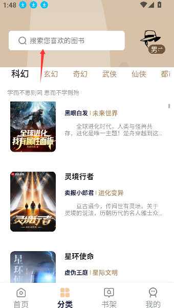 2、页面底部暗藏玄机,分类、书架和工具按钮排排坐,点一下它们就像召唤出管理小精灵,帮你整理阅读宝库。