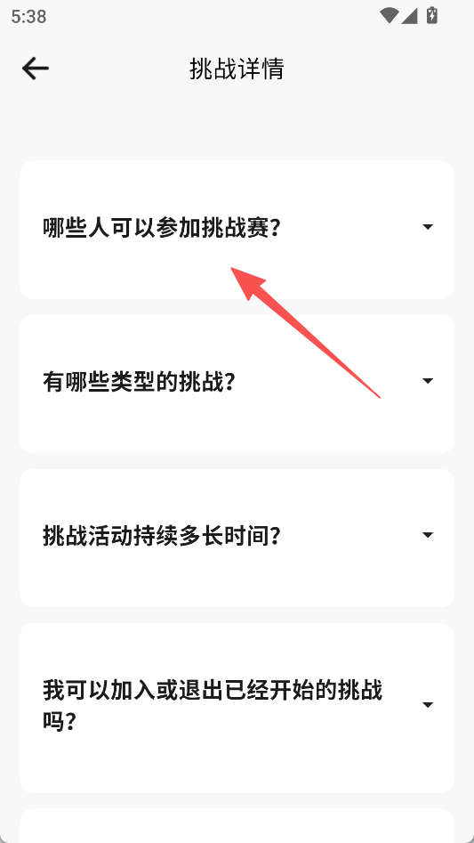 3、挑战详情页面以问题列表形式呈现,点击问题即可展开查看答案,能快速且全面地了解挑战活动的相关情况。