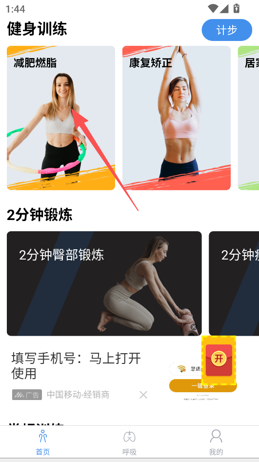 1、打开健身有宝,点击“减肥燃脂”分类,进入减肥课程页面。