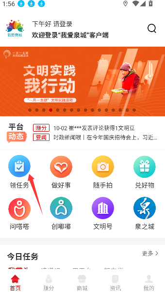 1、首次使用可点击“领任务”入口,领取如探寻特定泉水、参观文化场馆等城市体验或知识问答类任务。