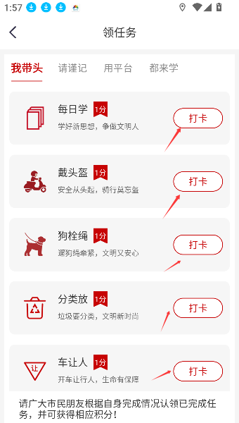 2、选择具体任务后,根据指引前往相应地点或完成指定动作,即视为成功打卡并记录足迹。