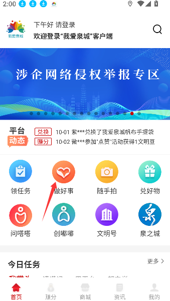 3、软件内设有“做好事”板块,可用于记录个人参与的志愿服务、文明善举,并能浏览社区中的其他正能量事迹。