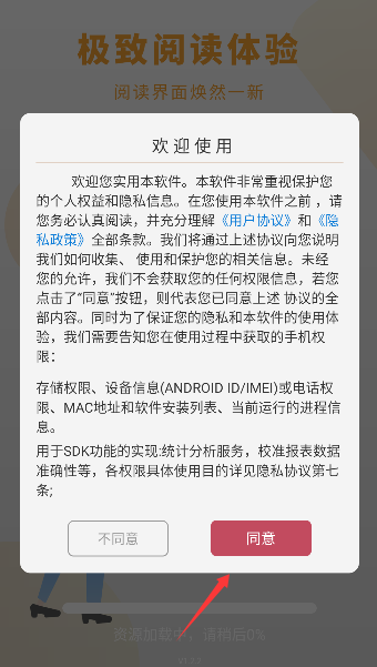 1、首次启动软件后,界面会展示隐私政策文本,需阅读完毕并点击同意选项,方可进入下一步。