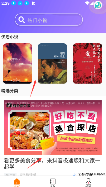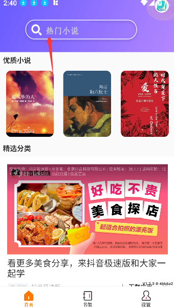 2、软件首页集中展示大量热门小说封面与书名,并按题材分类排列,方便快速浏览与选择。