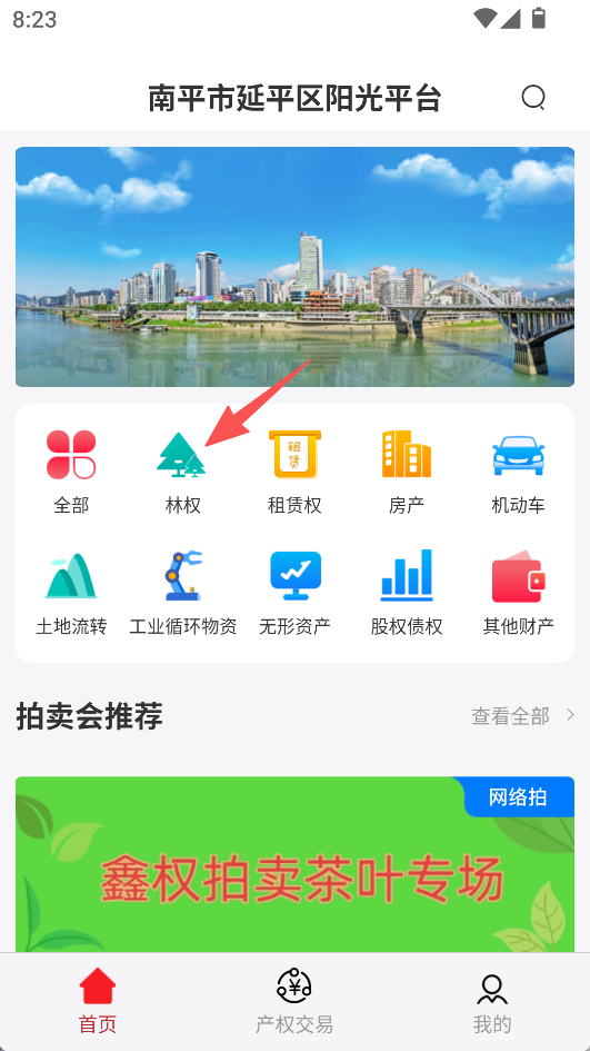 1、在首页点击林权等产权分类入口,进入对应板块。