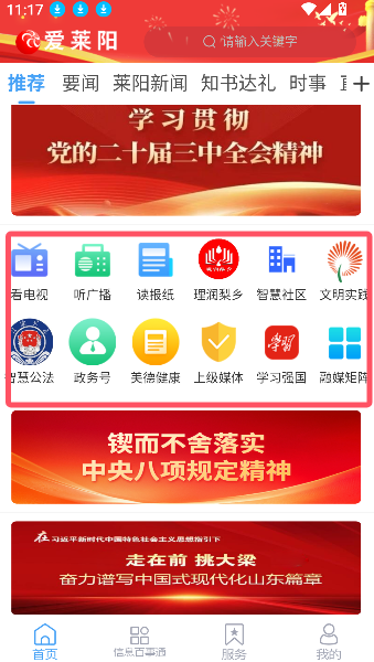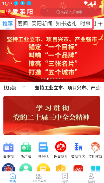 1、首页顶端设有导航区,可直接点击进入“要闻”、“莱阳新闻”、“知书达理”等资讯栏目进行浏览。