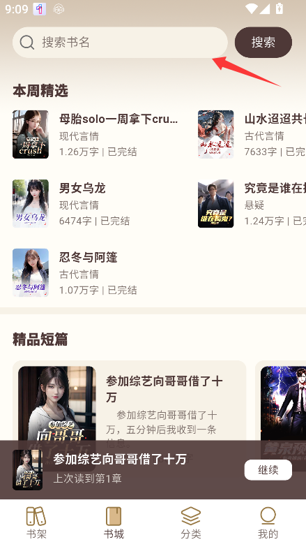 1、若希望查找特定作品,可点击页面上方的放大镜形状的搜索框,输入小说名称或关键词进行精确查找。
