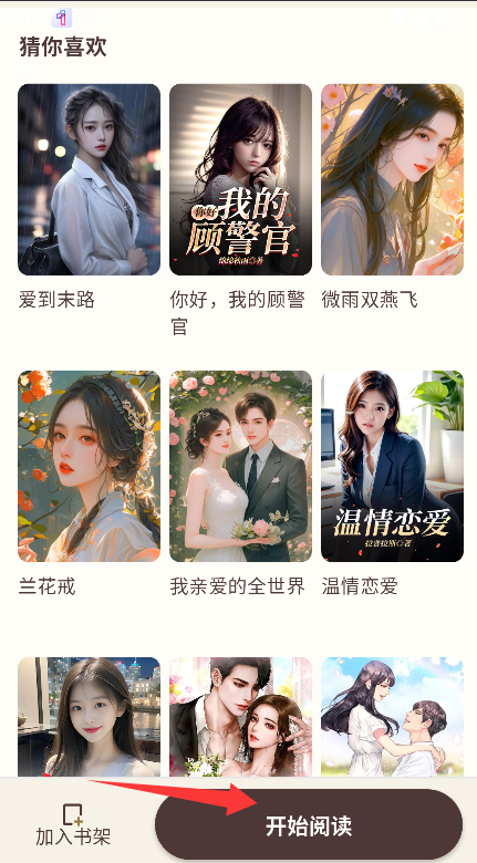 3、找到并点击页面中央或底部的“开始阅读”按钮,即可直接跳转至小说正文页面,立即展开阅读。