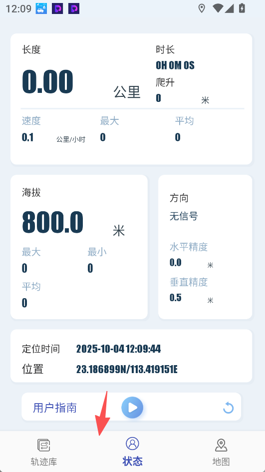 2、点击“状态”,查看运动的长度、海拔、定位等数据。