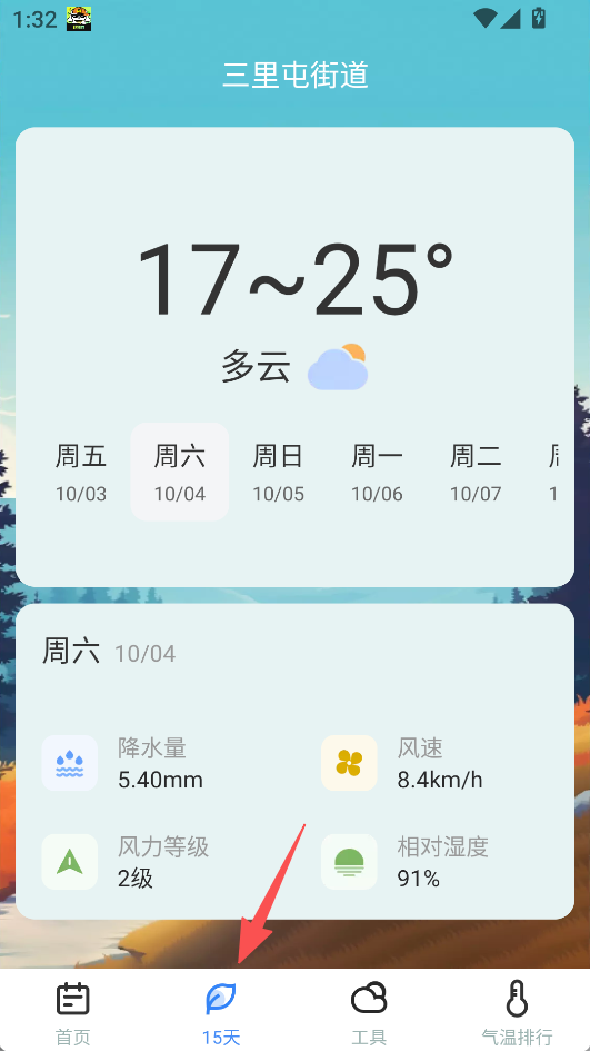 2、提供15天天气预报服务,能详细展示未来15天的气温、降水量、风速等气象数据。