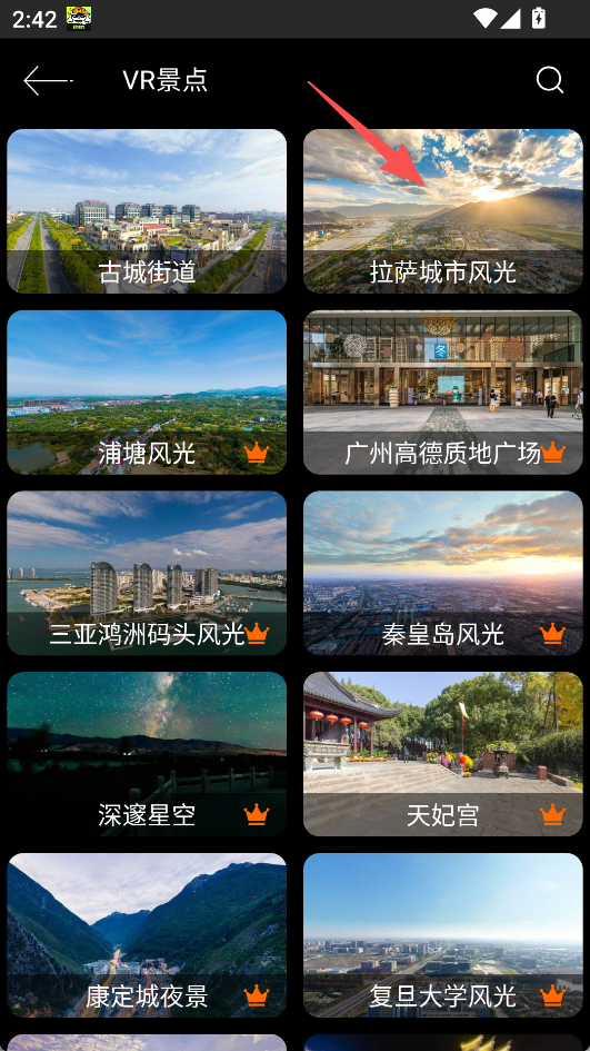 3、切换到VR景点板块,挑选VR景点,进行沉浸式虚拟游览。