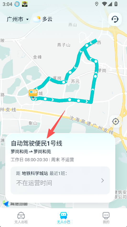 2、查看自动驾驶便民线路,了解运营时间等信息。
