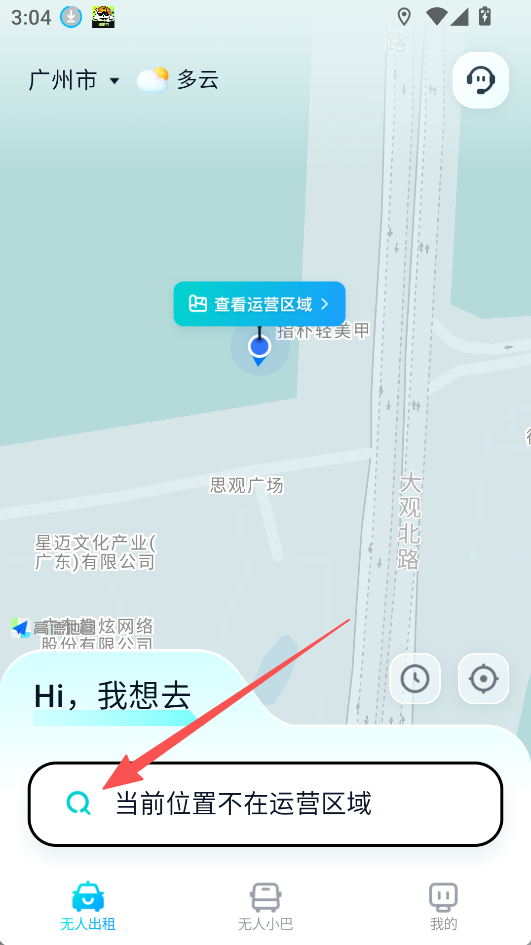 1、可选择出行服务,打开软件后,挑选无人出租或无人小巴服务,查看运营区域。
