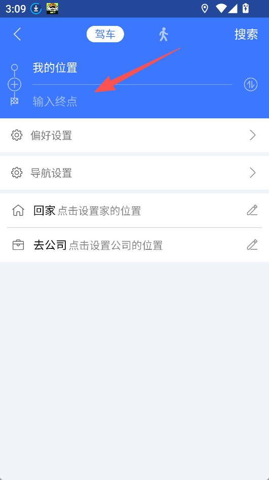 1、打开《图吧导航》,选择驾车模式,输入终点。