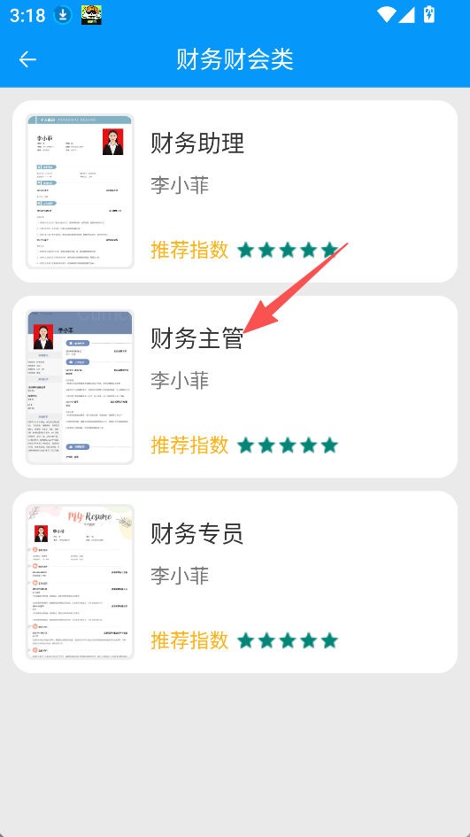 2、案例针对性强,每个分类下有对应岗位的简历案例,如财务财会类有财务助理、财务主管等岗位的简历示例。