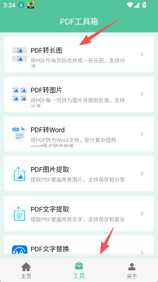 1、可进行PDF格式转换,能将PDF转换为长图,把PDF所有页码合并成一张长图;也能将PDF转换为图片,把PDF每一页转为图片。