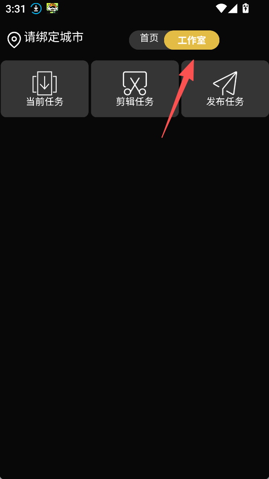 2、切换到工作室板块,选择当前任务、剪辑任务或发布任务。