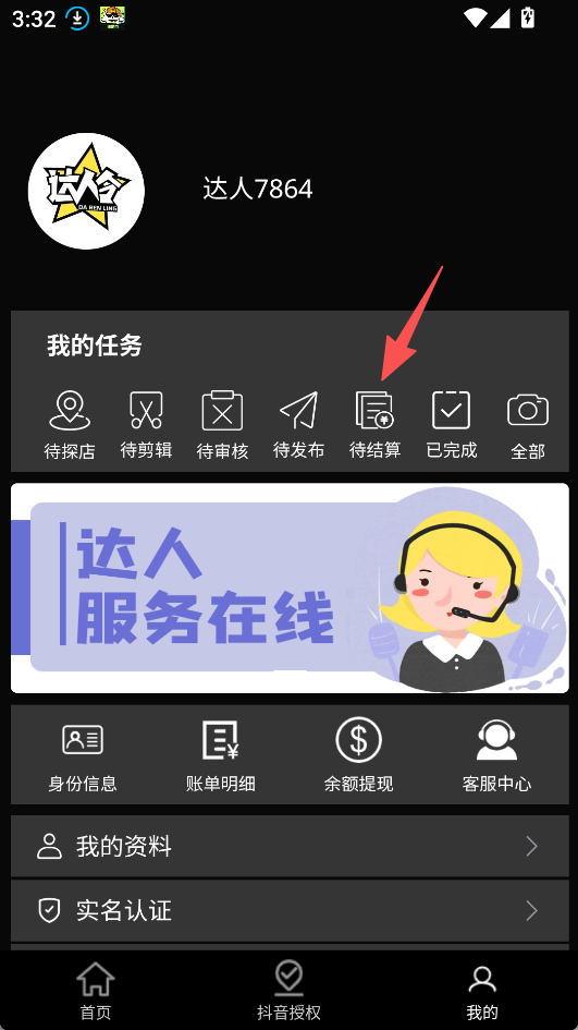 3、个人事务管理便捷,整合多种功能,方便达人查看任务状态、管理个人信息与资金。