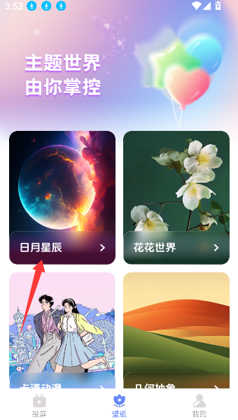 2、进入壁纸页面后,在分类中找到并点击“日月星辰”标签,筛选出该主题下的所有壁纸。
