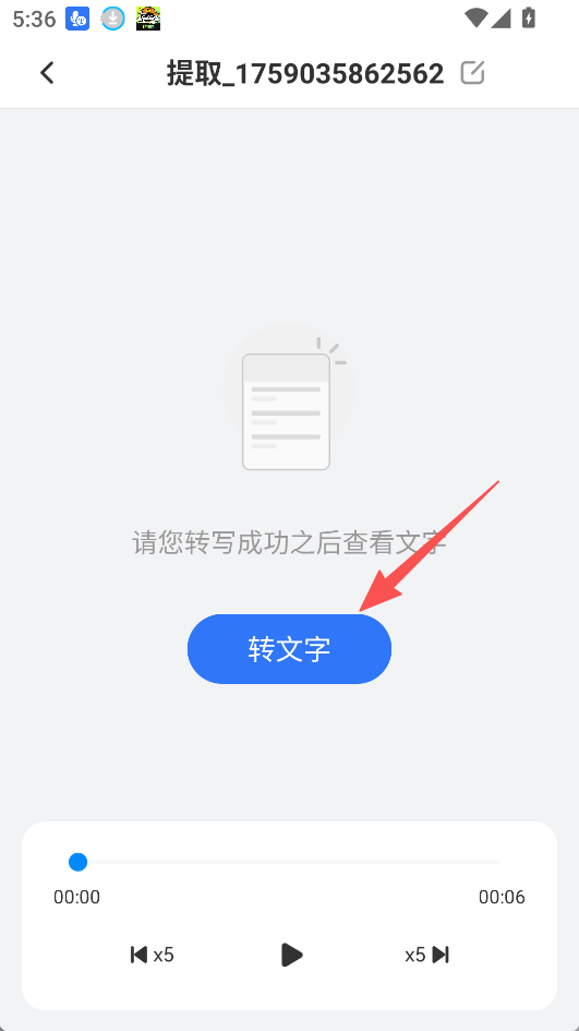 2、进入录音转文字界面,点击“转文字”按钮,将录音转换为文字。