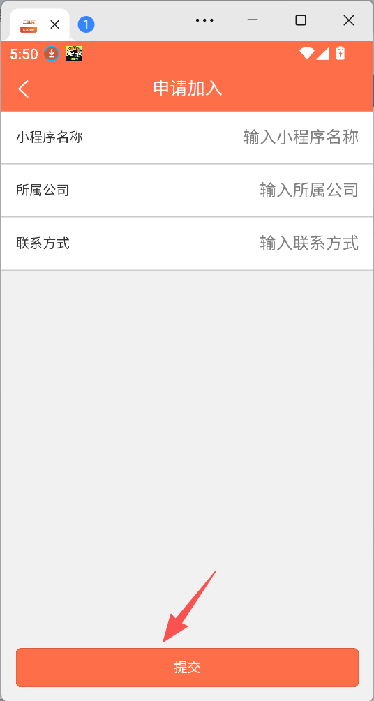 3、能申请加入相关主体,进入申请加入界面,填写小程序名称、所属公司、联系方式等信息后,完成申请。