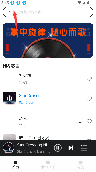1、打开《经典老歌》进入首页后,在界面顶部或底部的导航区域中找到并点击带有放大镜图标的搜索框,页面随即跳转至歌曲搜索功能页。