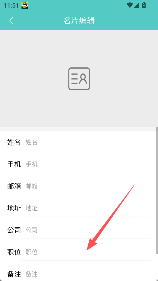 2、提供手动添加功能,在名片编辑页面,可手动输入姓名、手机、邮箱、地址等名片信息。
