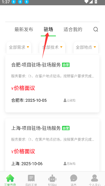2、进入驻场服务板块,能够浏览所有可提供的现场技术支持项目列表,包括各服务类型的详细说明与资源储备情况。