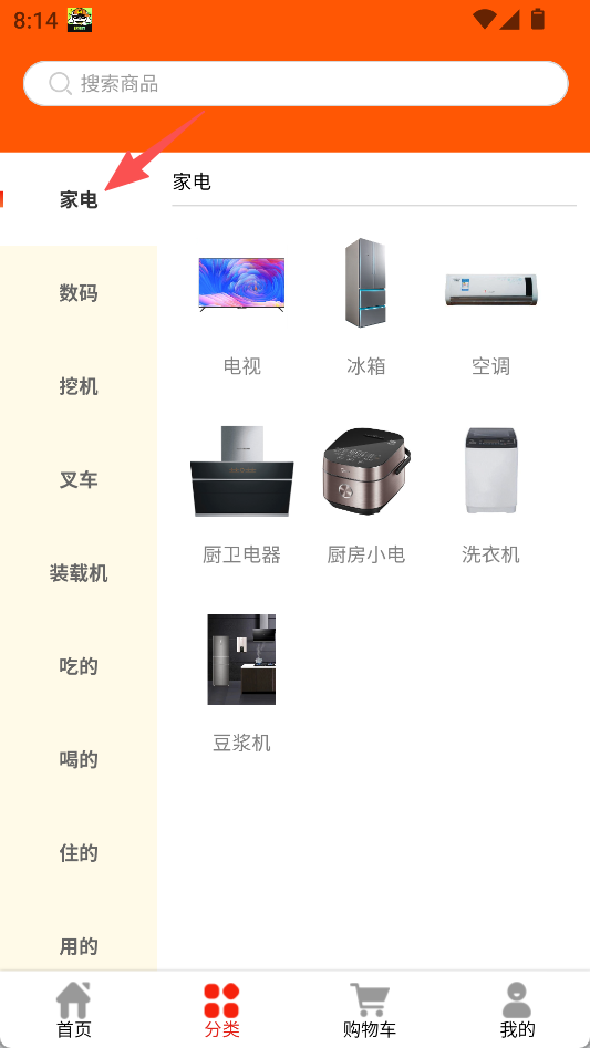 1、打开软件,进入“分类”页面,选择“家电”类别。