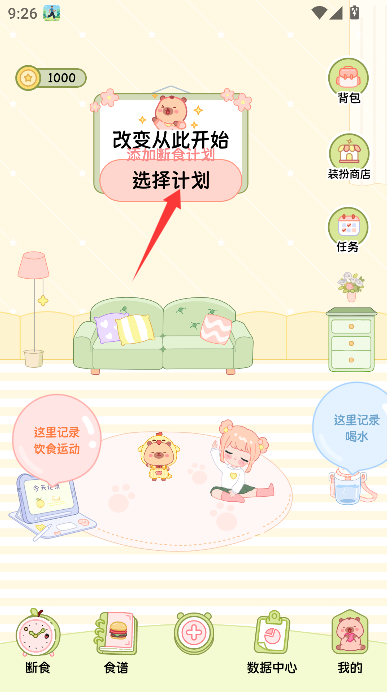 1、在首页界面找到醒目的"选择计划"功能按钮,点击后即可进入包含多种断食方案的选择界面。
