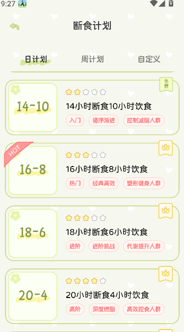 1、区别于统一化的轻断食方案,为不同用户定制专属计划,确保计划贴合用户实际情况。