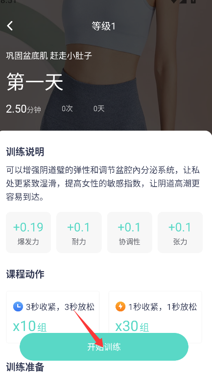 3、在此可阅读训练要点和动作分解,确认后点击页面下方的“开始训练”按钮启动本次练习。