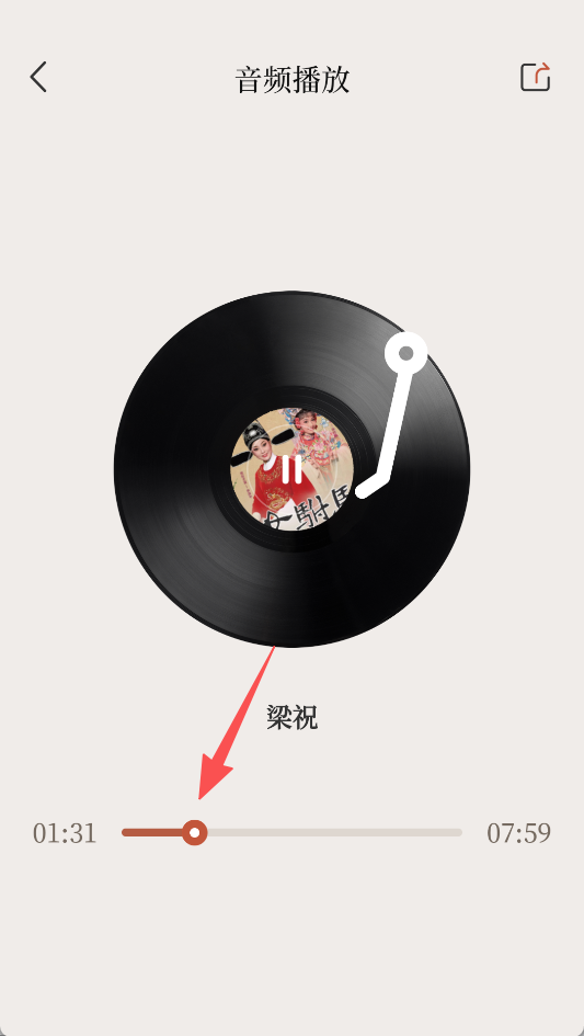 2、在音频播放页,可拖动进度条,调整播放进度。