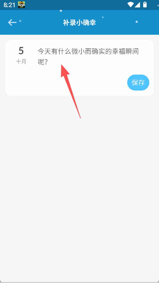 1、支持在补录小确幸板块输入文字,记录当天微小而确实的幸福瞬间并保存。
