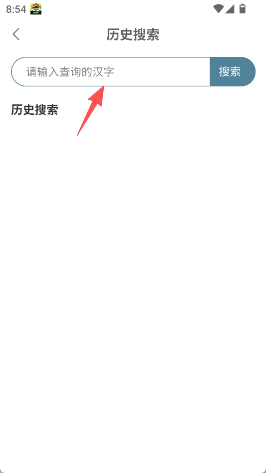 3、若需查看历史搜索,点击“历史搜索”选项,在对应搜索栏可再次输入汉字搜索。