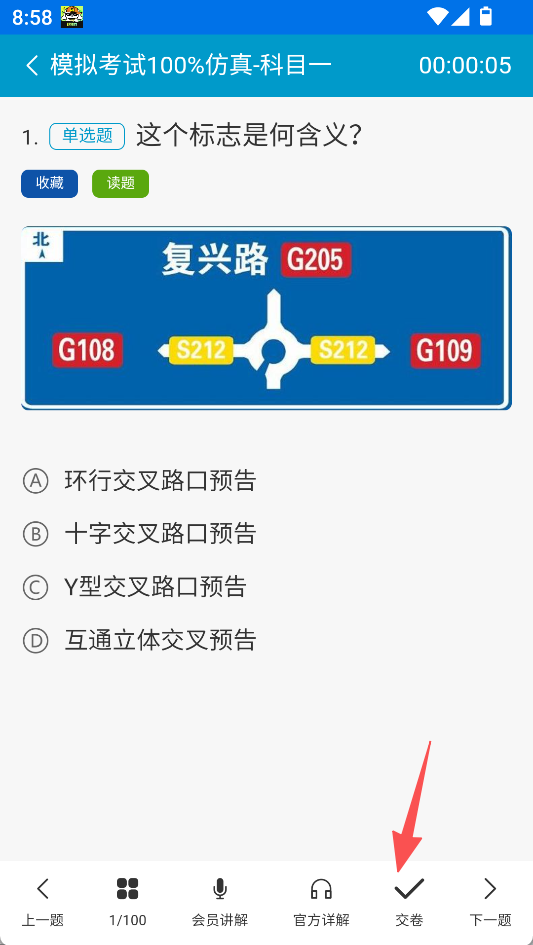 3、提供交卷功能,模拟考试结束后,可通过交卷查看考试结果,了解学习情况。