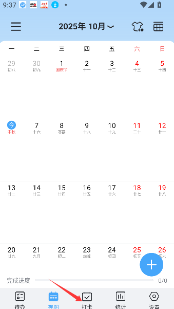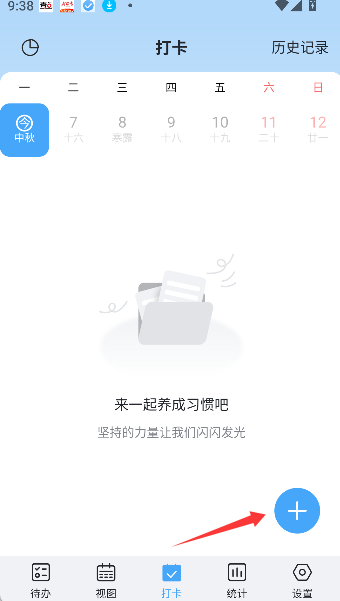 2、进入打卡功能主界面后,留意屏幕右下角并点击那个显眼的蓝色“+”号按钮。