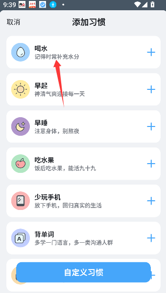 3、页面将跳转至习惯库,在此浏览并选择一项希望每日坚持记录的习惯进行添加。