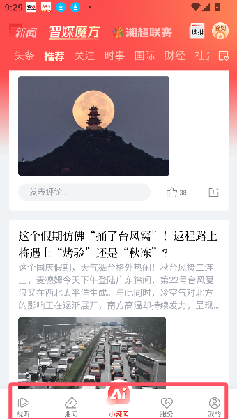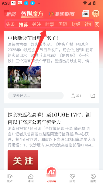 1、打开新湖南客户端后,首页上方导航栏清晰展示头条、时事、国际、财经等新闻分类频道,方便按需点击查看。