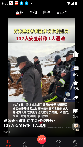 3、点击底部“视听”频道,即可进入多媒体内容区,里面包含新闻短视频、专题报道直播等丰富的视听资源。
