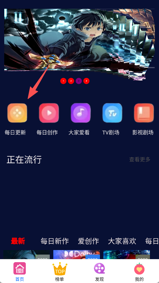 1、在首页点击“每日更新”,可查看热更、新作、爱看类影视内容。