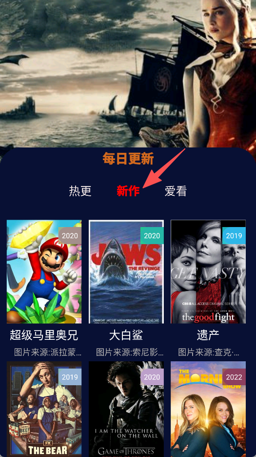 2、每日更新板块细分热更、新作、爱看类别,方便精准找到当下热门和最新上线的影视。
