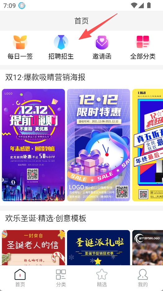 2、模板风格多元,有双12营销类、圣诞创意类等,能为各类设计提供丰富的视觉参考。