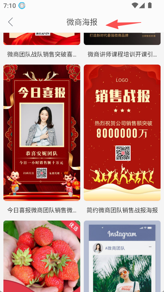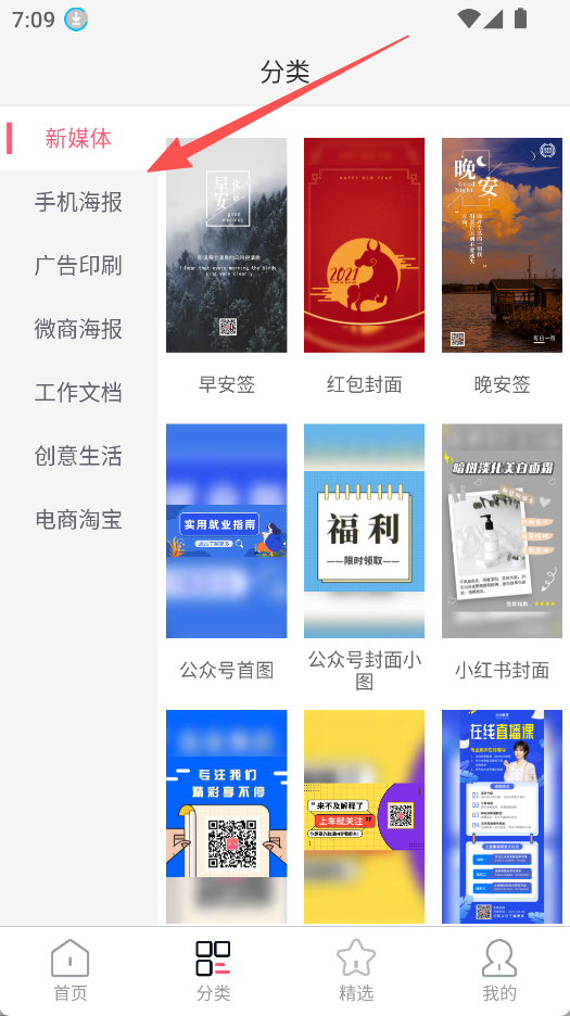 2、点击“全部分类”,能根据需求选择手机海报、微商海报等不同类别。